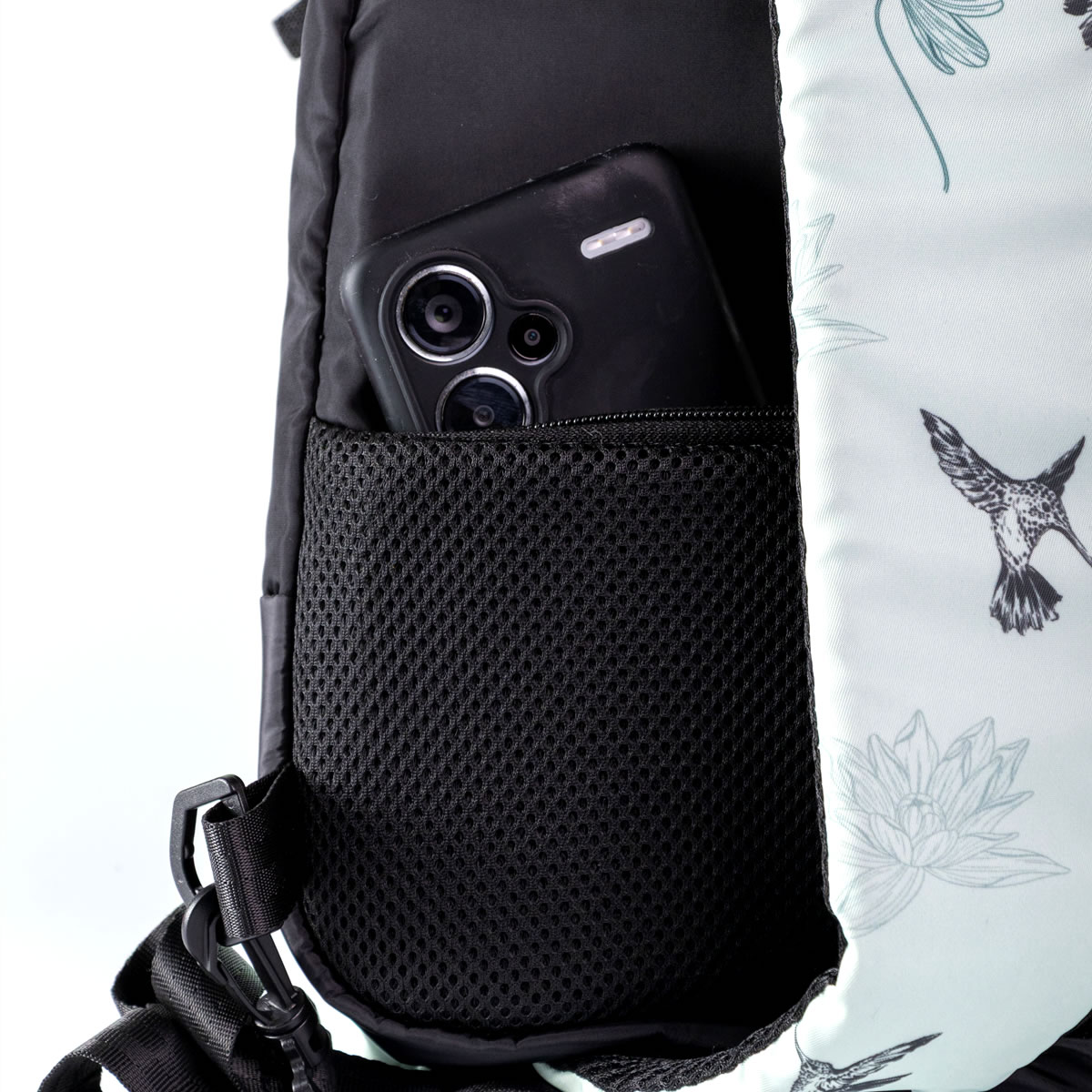 - Acceso Rápido al Celular: Un bolsillo con cierre lateral, perfectamente posicionado para que puedas guardar o sacar tu teléfono sin detenerte.